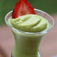 Place the avocado slices, sugar, and lime juice in a blender. Blend well. Transfer the resulting cream to a deep dessert plate. Serve the dip with fresh strawberries.