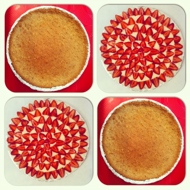 Once the base has cooled, spread the mascarpone on top, smooth it out, and arrange the strawberries on top.
