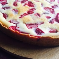 Arrange the pieces of strawberry and pour the sour cream mixture over the berries.