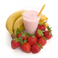 In a blender, combine the cleaned and chopped strawberries, sliced bananas, strawberry ice cream, milk, and vanilla.