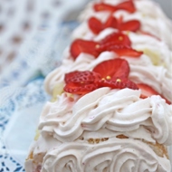 Decorate the top with cream and fresh strawberries.