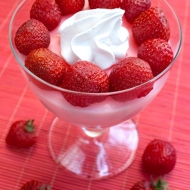 Meanwhile, in a small bowl, mix the remaining chopped strawberries with the reserved sugar. Let it sit a bit to allow the berries to release their juice. Top the set cream with this mixture and serve.