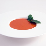 Strain the soup through a sieve. Serve garnished with a sprig of basil.
