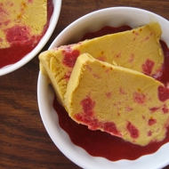 Blend 100 grams of thawed raspberries with 1/4 cup of sugar into a smooth sauce. Strain through a sieve if desired.