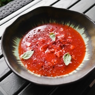 Strawberry Gazpacho with Stracciatella