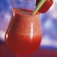 In a blender, combine strawberries, ice, powdered sugar, and lime juice.
