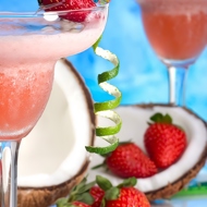 Add the peeled and finely chopped banana, coconut milk, and crushed ice. Blend until smooth.