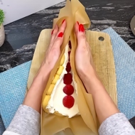 Roll the cake using the parchment paper.