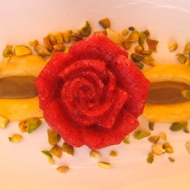 Strawberry Sorbet with Lemon Cream and Pistachio Paste