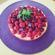 Spread the dough and place the strawberries on top, pressing them gently into the dough.