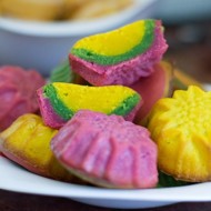 Alternately, using a spoon, fill the molds with the different colored batters.