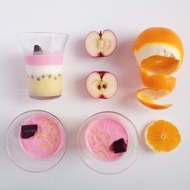 Pour the resulting liquid into bowls. In one, add berry juice or beet juice for color. In the other, add a little banana puree. Instead of natural colorants, you can use store-bought food coloring.