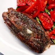 Flip the steak and reduce the heat to medium. Sear for 5 minutes.