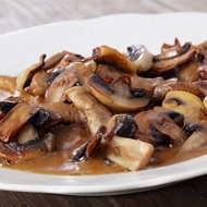 Chop the soaked mushrooms and place them in the skillet with the wine, season with salt and pepper. Bring to a boil and immediately reduce the heat. Simmer covered for 30 minutes. Remove from heat, add the sour cream and a portion of grated nutmeg. Warm through without boiling.