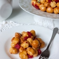 Fry the pieces of dough in batches until golden brown on all sides. The pieces should not be crowded in the skillet.