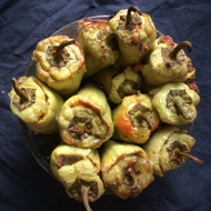 Stuff the peppers with the Bolognese and buckwheat mixture and bake in the oven for about 40 minutes, covering with foil for the last 10 minutes to prevent burning.