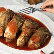 Stuffed carp, traditionally served cold. The carp is cooked surrounded by slices of vegetables that will impart their juices to the fish, so be sure to find delicious beets and tasty carrots.