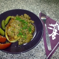 Form a patty from the mashed potatoes (wet your hands with cold water to prevent sticking), place the meat filling inside, wrap it up, and coat in breadcrumbs. Fry in oil.