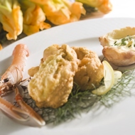 Heat the oil, dip the flowers in the batter, and fry until golden brown.