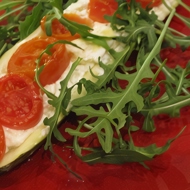 Cut the cherry tomatoes in half and place them on top of the stuffed zucchini.