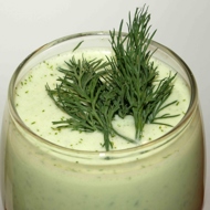Chop the dill and place it in a cup for an immersion blender, add chilled kefir, salt to taste, and blend everything.