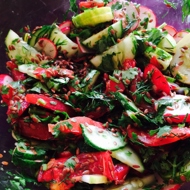 Cut the cucumbers lengthwise in half, then slice them very thinly. If the cucumbers are small, you can simply slice them into rounds.
