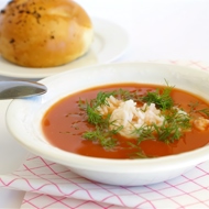 Summer soup with tomatoes and bell peppers