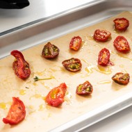 Place on a baking sheet drizzled with oil, add a few slices of garlic and sprigs of thyme, and transfer to a dehydrator for 3 hours or to an oven preheated to 158°F for 6 hours.