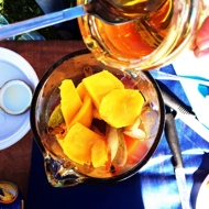 Pour the chopped pineapple, peach, and grapefruit with carrot juice and add honey. Blend all the ingredients for 3–5 minutes.
