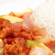 For the sauce, mix brown sugar, 2 tablespoons of cornstarch (or cornstarch – maize starch), crushed garlic, vinegar, tomato paste, and pineapple juice, then pour it into a wok. Bring to a boil, stirring until it thickens and becomes clear. Keep it on the heat for one minute.