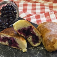 Sweet buns filled with blackcurrant.