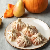 Mash the cooked pumpkin and pear with a fork until smooth, then mix together and add sugar.