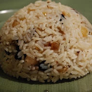 Melt the butter and half of the honey in a skillet. Sauté the dried fruits with the nuts. After 5 minutes, add the rice. Cook for another 5–8 minutes. Remove from heat and let the pilaf sit covered for 8 minutes.