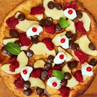 Sweet Pizza with Caramel Pears, Raspberries, and Cream Cheese