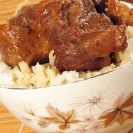 Make sure the liquid does not evaporate completely. The water should reduce to a golden syrup that you will drizzle over the meat when serving it on cooked rice.