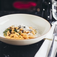 Recipe by John Smith, chef at a local American restaurant. While in Italy gnocchi are made with regular potatoes, in the Middle East, for example in Israel, sweet potatoes are used instead. Otherwise, this is a classic recipe featuring ricotta and parmesan. The flavor of the sweet potato pillows is incredibly delicate, even dessert-like. Therefore, they require no sauce other than sage-infused oil.