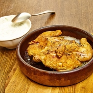 Tabaka Chicken with Sour Cream and Garlic Sauce