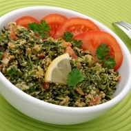 A classic Middle Eastern appetizer made from bulgur wheat and parsley. If you want the grains to be fluffy and light, tabbouleh should be served immediately after preparation. However, we prefer to cover the dish and place it in the refrigerator for about two hours so that all the aromas and flavors blend together into a harmonious whole.