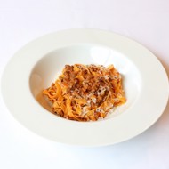 Once the Bolognese is ready, you can cook the pasta. For homemade pasta, it should be slightly undercooked, meaning you should boil it for one minute less than required. If you're using store-bought pasta, do the same and boil it one minute less than the package instructions. When the pasta is combined with the ragù, it will simmer together for a couple more minutes, achieving the desired consistency in harmony with the sauce.