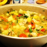 25 minutes before the meat is fully cooked, add the potatoes, zucchini, green beans, and bell pepper.