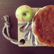 Roll out the dough slightly larger than your pan, to a thickness of 3 mm. Place the dough over the apples and gently press the edges. Trim any excess dough and place it in the oven for 25–30 minutes until the dough is golden brown.