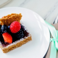 Decorate with strawberries, blackberries, blueberries, and raspberries. Dust with powdered sugar.