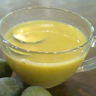 Juice the oranges, which will yield about 150 ml of fresh juice. Pour the juice into the blender with the feijoa and blend.