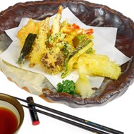 Coat all the seafood and vegetables, seaweed, and a sprig of parsley first in the remaining tempura flour, then in the batter, and deep-fry for a minute or two.