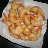 Place the fried shrimp on paper towels to remove excess fat.