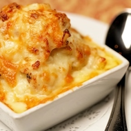 Grease a baking dish (one large or 4–6 small ones) with oil. Spread the potato mixture without smoothing the surface. Sprinkle with the reserved cheese and bake in the oven at 356°F for 25–30 minutes until golden brown.