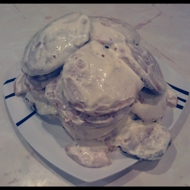 For the frosting, mix the sour cream with the remaining sugar and softened butter, and whip until smooth.