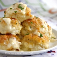 The cheese will melt and flow, while the cream will soak into the balls, resulting in a luxurious dish of your own making! Stewed vegetables or a salad make a great side.