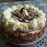 Layer each cake layer with cream. Then, pour the remaining cream over the entire cake and sprinkle with fresh coconut flakes on top. Refrigerate for 3 hours.