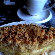 For the crumbly dough, grate 250 g of frozen butter into 3–4 cups of flour. Add a packet of baking powder and half a cup of sugar.